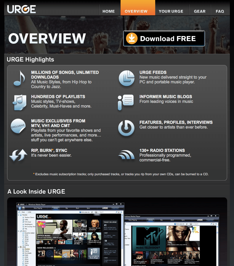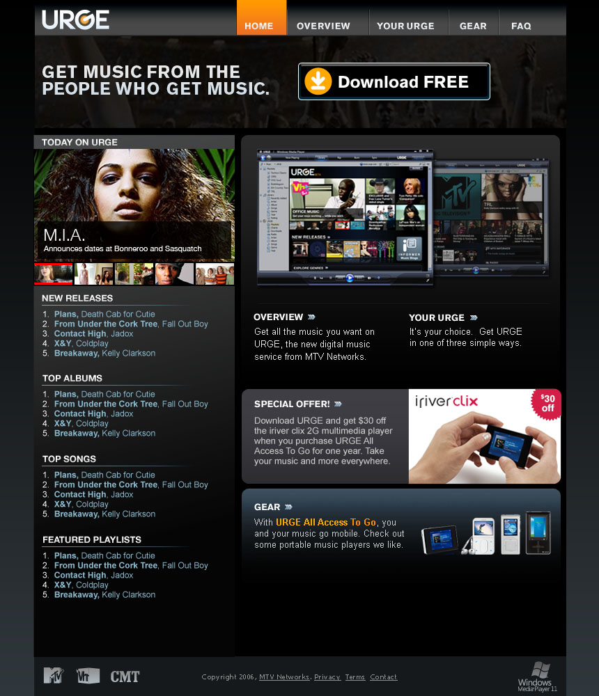I was an integral member of the team that built Viacom’s digital music service, URGE. I helped design and develop the user interface and key features (see below). I also produced franchise-related applications and content for cross-platform devices.